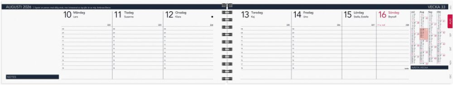 - Extra information Format: 255x95 mm. Layout: Stående. Vecka/uppslag. Timindelning 8-18. Kalendarium: 2025-12-22 - 2027-01-03. Omslag: Papper. Spiralbunden. Innehåll: Kyrkliga helgdagar, Flaggdagar, Helgdagar/aftnar, Månfaser, Namnsdagar, Internationella helgdagar översikt, Temadagar/händelser, Årsöversikt/årsöversikter, Årsplan/årsplaner. Antal sidor: 120. Miljöinformation: FSC®.
