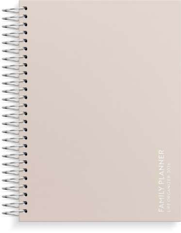Format: 148x210 mm. Layout: Stående. Vecka/uppslag. Kalendarium: 2025-12-29 - 2027-01-03. Omslag: Kartong med struktur. Spiralbunden. Detaljer: Pappersficka. Innehåll: Checklistor, Familjens mål, Månadens mål, Månadsöversikt, Anteckningssidor, Stickersark, To-do, Trackers, Årsöversikt/årsöversikter, Årsplan/årsplaner. Antal sidor: 176. Miljöinformation: FSC®. -