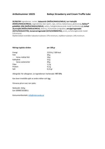 - Information Utsökt god tryffel med äkta Bailyes Strawberry liqueur. Vikt 318 g.