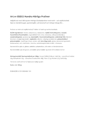- Information Här ligger pralinerna trångt för att alla favoriterna ska få plats. Nougatpraliner, gräddtryffel, mandelnougat, kanelpraliner och många, många fler.