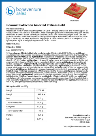 93203 - Chokladask Gourmet Collection Assorted Pralines Gold 365g