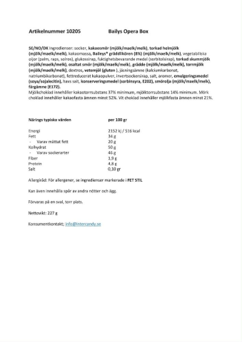- Information Utsökta praliner av vit, mjölk- och mörk choklad smaksatta med äkta Baileys Original Cream likör. 227 g.