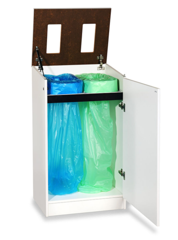 Ett modulsystem för avfallshantering och källsortering. Vid säckbyte öppnas dörrarna och även toppskivan är öppningsbar. Mått H x B x D: 1000 x 565 x 440 mm. Inkastöppning 100 x 220 mm x 2 st. Laddas med säckkassett Longopac Mini.