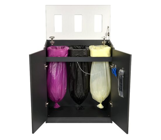 Ett modulsystem för avfallshantering och källsortering. Vid säckbyte öppnas dörrarna och även toppskivan är öppningsbar. Mått H x B x D: 1000 x 820 x 440 mm. Inkastöppning 100 x 220 mm x 3 st. Laddas med säckkassett Longopac Mini.
